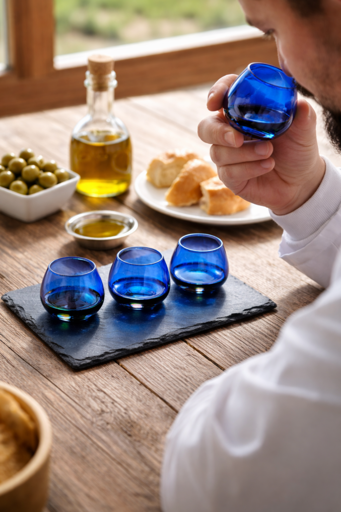 – Picante: esa sensación en la garganta que indica la presencia de antioxidantes naturales. - En una cata profesional, el vaso debe ser azul (o rojo), para eliminar el sesgo visual, ya que el color no indica la calidad del aceite.